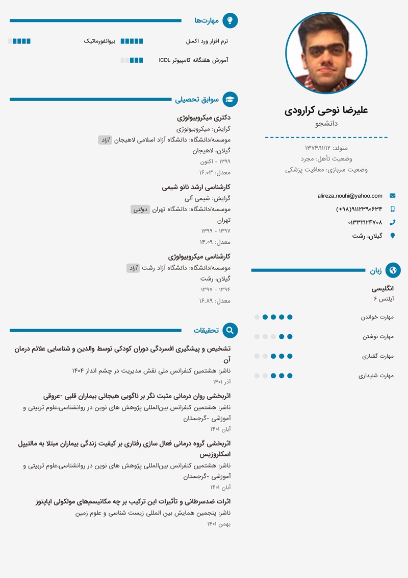 فارغ التحصیل کارشناسی ارشد نانوشیمی گرایش شیمی آلی و کارشناسی میکروبیولوژی