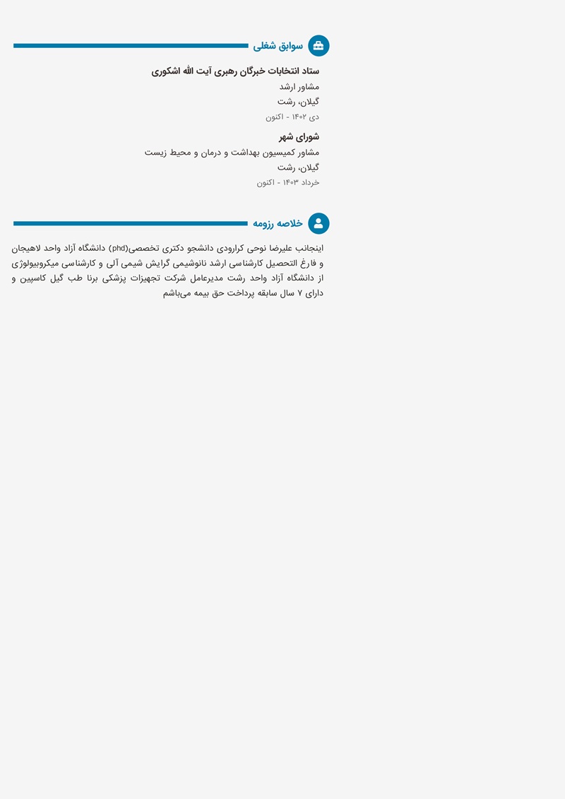 - مشاور کمیسون بهداشت شورای شهر رشت